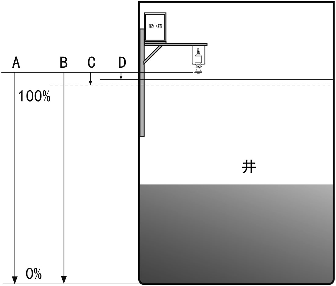 Note: Make sure the radar level meter the highest level cannot enter the measuring blind area (Figure D shown below).